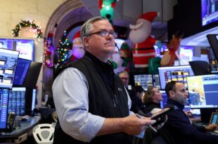Traders work on the floor at the New York Stock Exchange in New York City, …